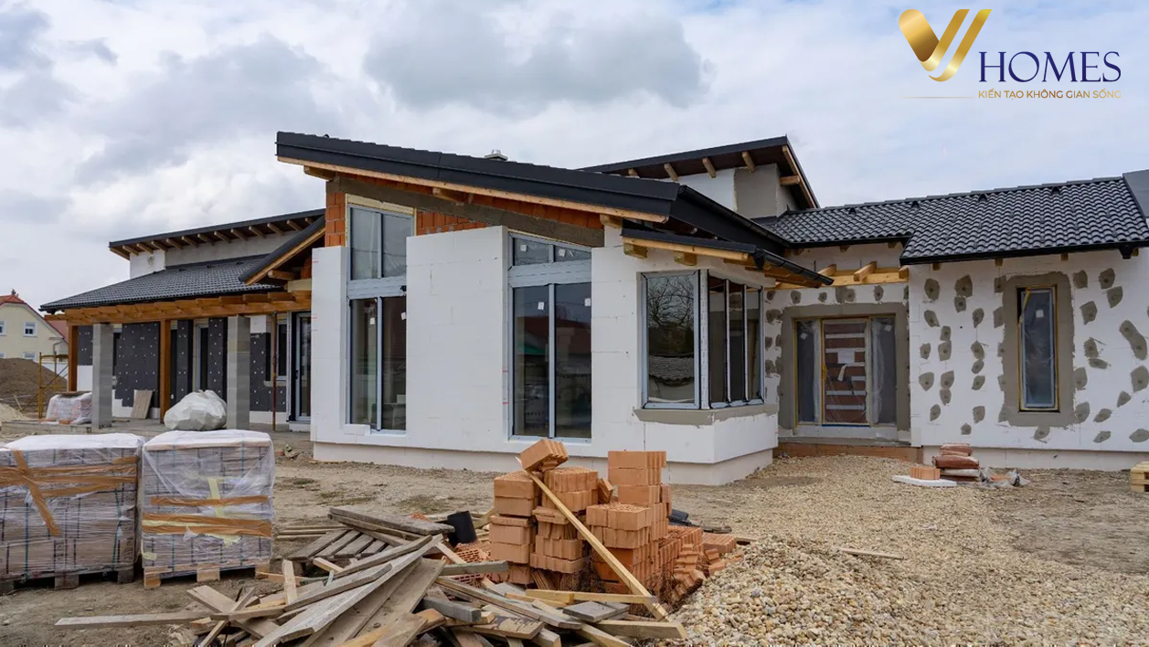 Trước khi bắt đầu, đội ngũ VHOMES tiến hành khảo sát hiện trạng, định vị công trình, chuẩn bị hồ sơ thiết kế, biện pháp thi công, vật liệu và nhân lực. Đây là bước quan trọng đảm bảo tiến độ và hạn chế rủi ro trong quá trình thi công.